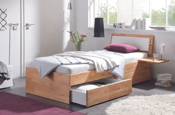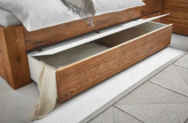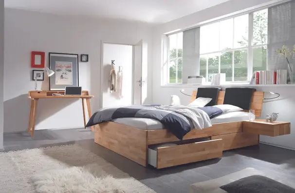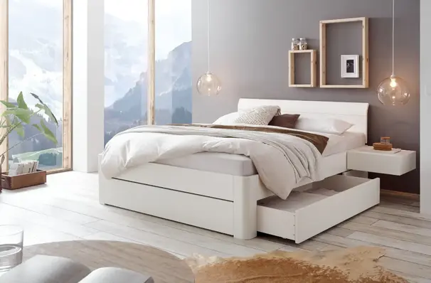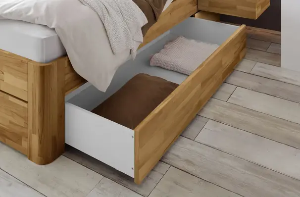 De Function collectie omvat bedden die veel meer kunnen dan er alleen goed uitzien - heb je opbergruimte nodig? Geen probleem, de Function-modellen overtuigen door stabiliteit, de hoogste eisen aan de afwerking en hoogwaardige technologie. Voor de bedladen gebruiken we alleen uittrekbare rails van het bekende merk Blum. Je hebt de keuze tussen gedempte zelfsluiting of Tip-On volledig uittrekbaar.
