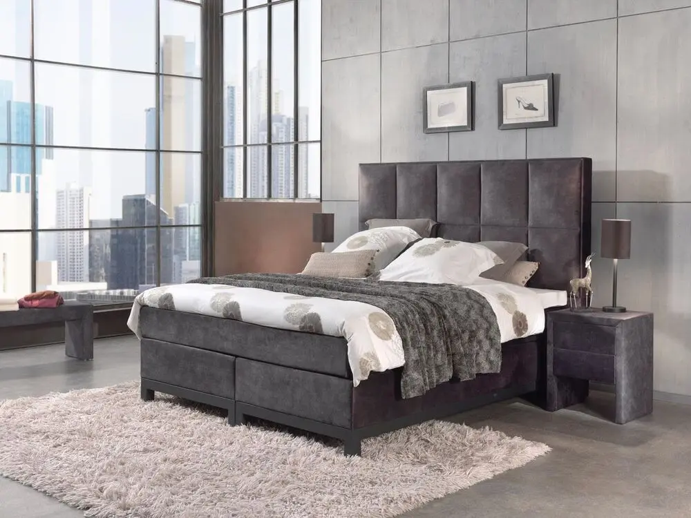 Het moderne uiterlijk van Boxspring Lara wordt bepaald door de vlakverdeling op het hoofdbord. De strakke lijnen en mooi afgewerkte naden geven het een mooie uitstraling. Het hoofdbord is niet alleen mooi, maar ook functioneel. De vlakken zijn opgevuld waardoor deze zacht en fijn aanvoelen aan uw hoofd en rug. Deze boxspring is van heel kwaliteitsvolle materialen gemaakt waardoor deze boxspring heel luxueus oogt. Daarnaast is het hoofdbord meegestoffeerd in dezelfde kleur als de boxen en matras van de boxspring. De kleur kan u zelf kiezen. Dit zorgt ervoor dat de boxspring een mooi geheel vormt. Deze boxspring heeft een modern hoog hoofdbord dat een tijdloze uitstraling heeft.